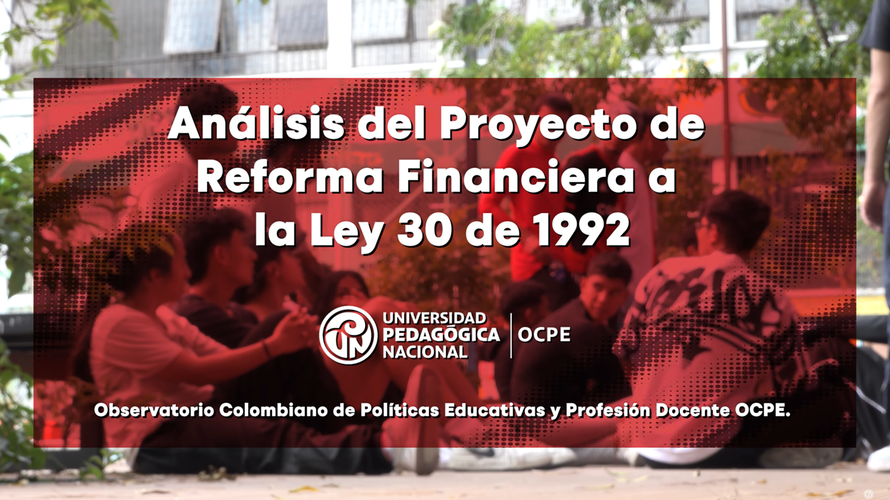 Este video presenta el análisis del Observatorio Colombiano de Políticas Educativas y Profesión Docente (OCPE) sobre la reforma financiera de la Ley 30 de 1992.